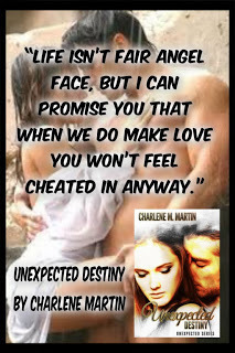 FIND THE AUTHOR https://www.goodreads.com/book/show/17906326-unexpected-destiny?from_search=true https://www.facebook.com/charlene.m.martin.author https://www.facebook.com/pages/Unexpected-Love-by-Charlene-M-Martin/486044384772742?ref=hl c.m.martin.author@gmail.com http://charlenemartin.blogspot.com/ OTHER BOOKS BY THIS AUTHOR