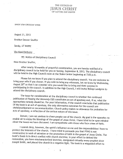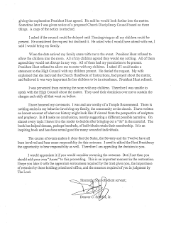 President Hunt called and read me a very short letter from the First Presidency denying my appeal. Because the appeal was denied, I have no reason to withhold a copy of the appeal letter. See below. The letter denying the appeal was approximately 2 sentences long, the second sentence told President Hunt that he could read it to me, but that President Hunt could not give me a copy of the denial.