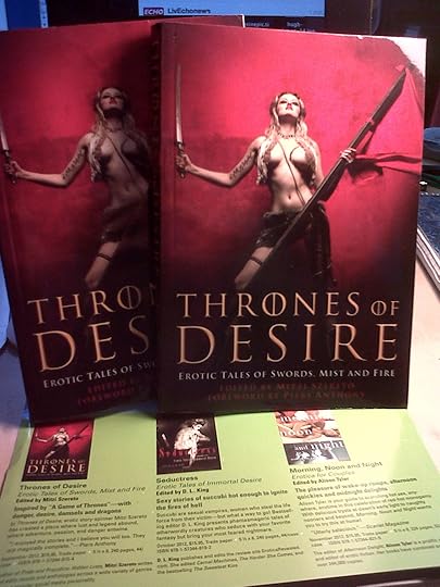 Thrones of Desire: Erotic Tales of Swords, Mist and Fire is a place where lust and legend abound, and adventure, passion and danger entwine. Think mystical lands and creatures, kings and queens, knights and renegades, heroes and villains, warlords, maidens and princesses. Think battles and danger, honour and dishonour, good and evil. Most of all, think hearts filled with passion and secret desire.