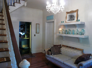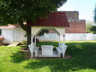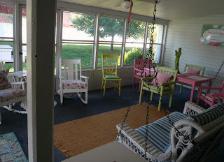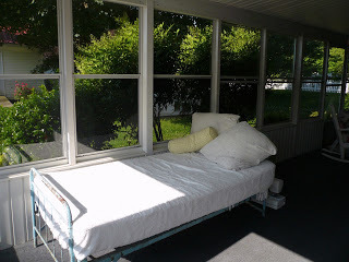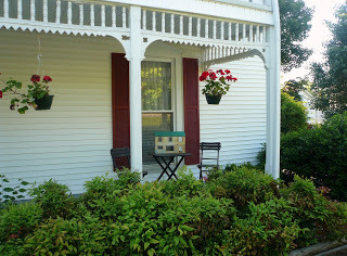 The entire house was a delight with vintage photos, good books on every shelf, and a screened back porch (complete with daybed) with a swing that was a perfect spot for early morning coffee and stitching. There was even a little shaded table out in the side yard.
