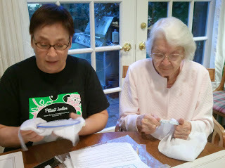 It was my privilege to spend time stitching (please excuse the casual attire!) side by side with this gracious lady. She can convey more with one arched eyebrow than 1000 words could speak. Clearly I have lots to learn!