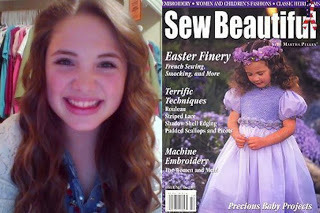 The original version of the dress was published several years ago by Country Bumpkin. It was called April in Paris and was on the cover of issue #80. They could not have picked a more perfect model.