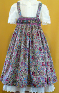This is a photo of the first version (kind of a trial run) of the project I'm planning for Farmhouse Fabrics next year. The cotton batiste underdress/slip could stand alone with a sash as a beach type dress of it could take on a very formal look worn under a velveteen or corduroy dark colored a-line jumper. I love the look of it paired with the smocked floral cotton lawn jumper.
