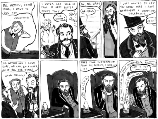 How did he get that number! I may have taken a few liberties. The kind that gets me emails warning that while I normally enjoy your comics, I hope you know that you have this completely wrong and now I have no respect for you. Well. I shan't fight you over Bell and Watson having a direct line to Gray's newly developed telephone but there it is nonetheless.