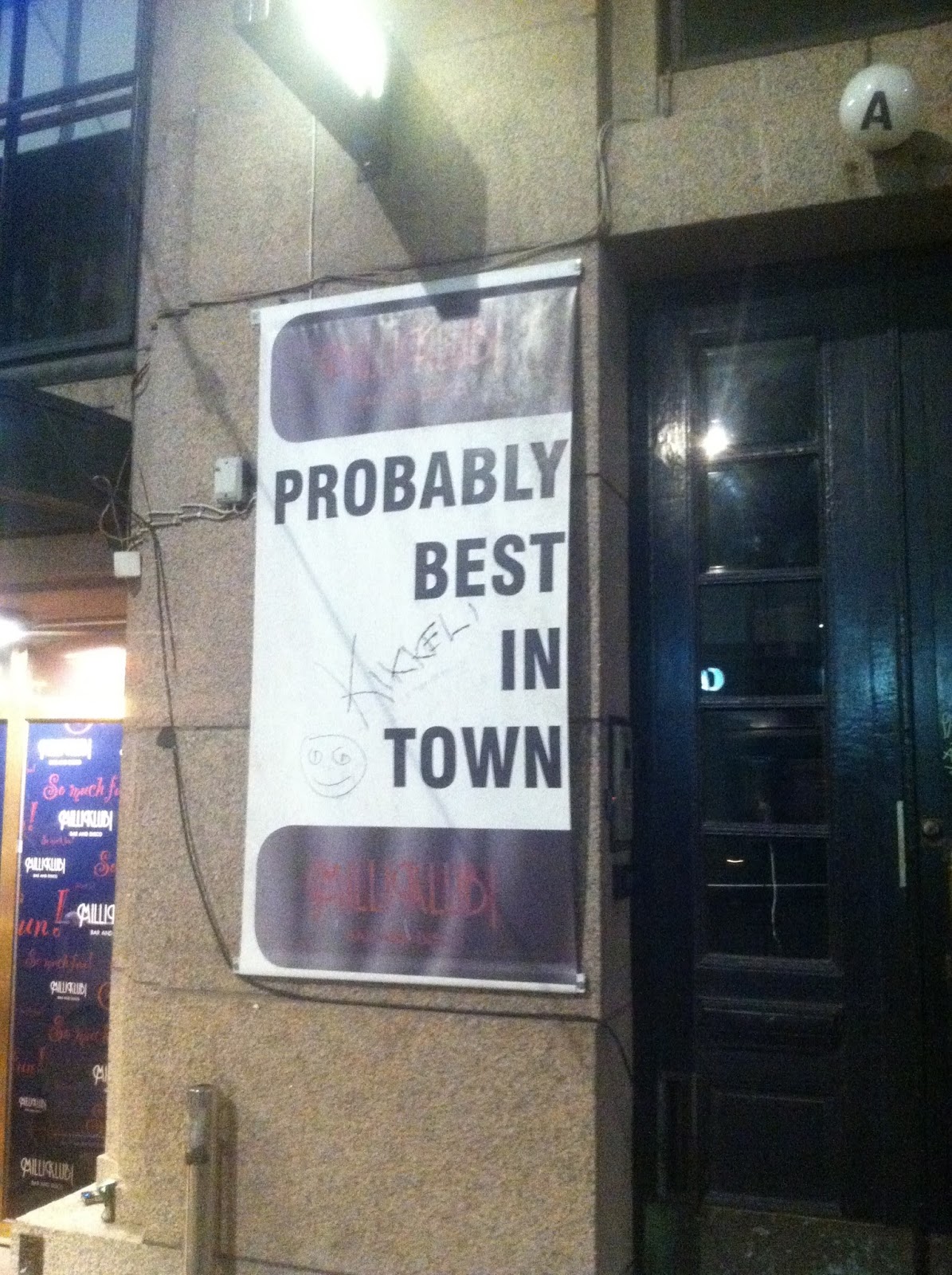 We were told by a very drunk and passionate-aggressive Finn (who is documented in this hilarious Joe Ollmann drawing) that this painting in the bar was of either a very beloved body guard or a hitman, it was unclear.
