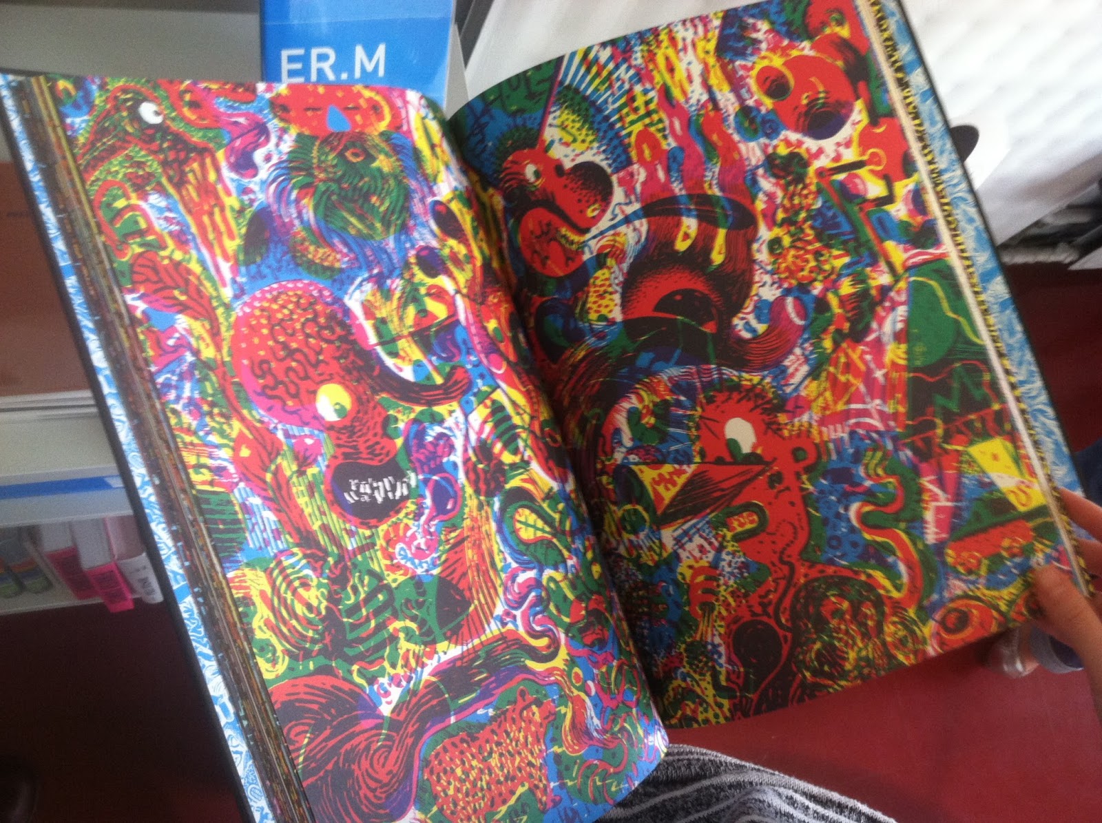 I also drooled over Tommi Musturi's new large and colorful new book called Beating, which collects his drawing, painting, and illustration work. It's a beaut! This spread is the festival program illustration he made for the Eyeworks Festival in 2011. I had to restrain myself from buying everything at the Huuda Huuda table.