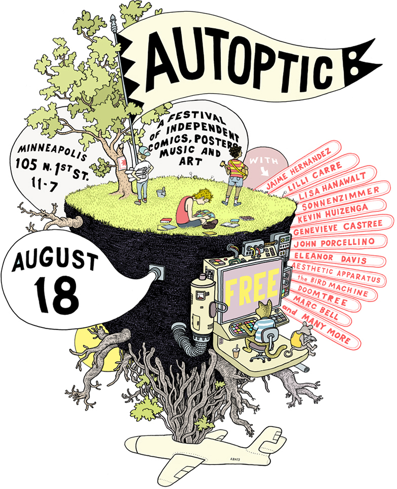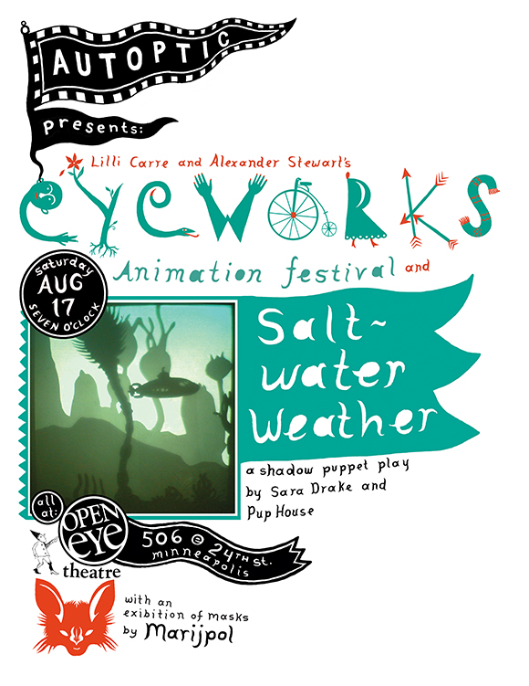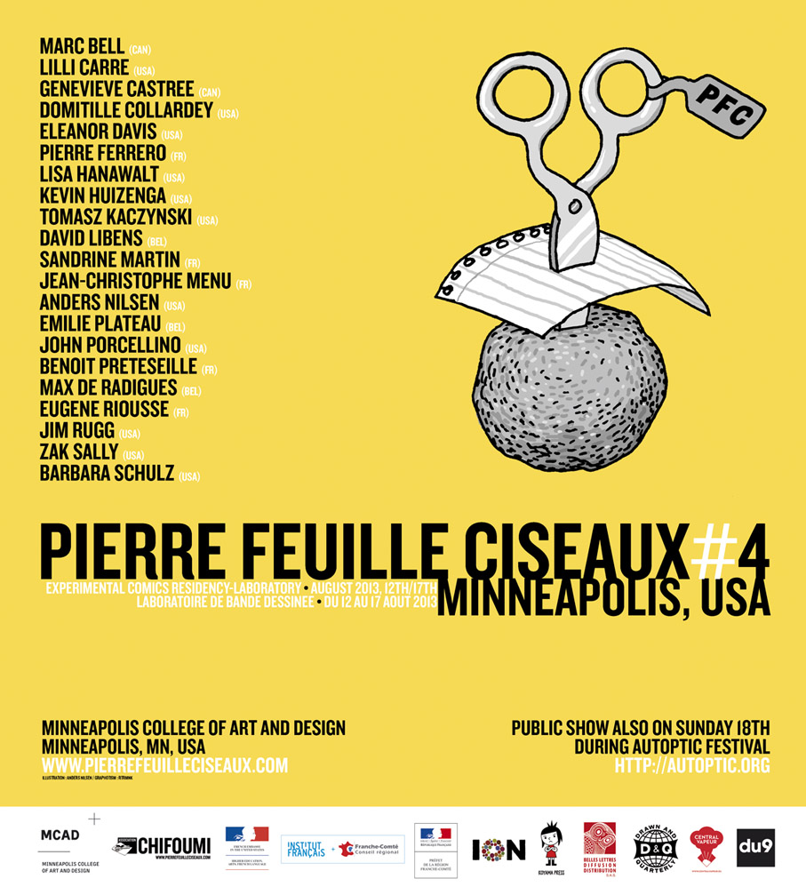 I am very excited to be in Minneapolis next week to participate in Pierre Feuille Ciseaux #4, ('Rock Paper Scissors' in French), an experimental comics laboratory / residency. You can read about it over here. I also have some work in The Jugglers exhibition which opens on Tuesday the 13th at Co Exhibitions. On Saturday evening at 7 at the Open Eye theater, we will be presenting an Eyeworks Festival animation program, shown along with the dreamy undersea shadow puppet play performed by Sara Drake / Pup House. Then on Sunday August 18 (my favorite day of the year!) I will be tabling at the Autoptic Festival with Laura Park. It's going to be an amazing whirlwind. Just look at all these incredible Anders Nilsen posters!!