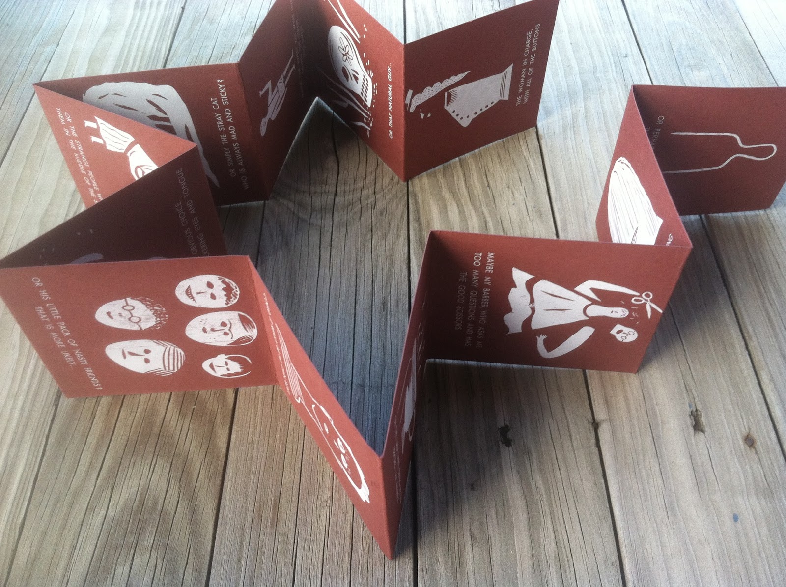 I'm very, very excited to be a festival guest at the Helsinki Comics Festival this year! I can't wait to read and get my mitts on more Finnish comics. I made a new screenprinted / foil stamped, two-sided accordion book for the festival, called Hoo Dunnit. I'll have these with me and a bunch of other stuff at the festival this weekend.