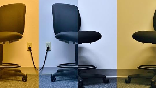 Justin wrote a piece for timpani, piano, and trumpet. The sound of a dumpster was the influence for the timpani. I sampled my chair at work (the sound you hear at the beginning and end of the track) and used it to replace all of the sounds but the trumpets. I added a trumpet harmony line and Justin added a vocal. Everything else is my sampled office chair.