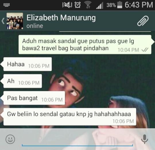 Dengan penuh perjuangan, akhirnya saya sampai di rumah baru. Setelah mindah-mindahin barang, saya pamit pulang dengan meminjam sandal calon housemate baru saya. Pas di bus, saya curhat sama salah satu teman saya yang lagi liburan di Bali. And surprisingly...