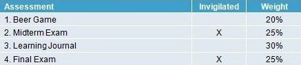 Kitaharus dapat total nilai 50% dari total 100%, DANUntuksetiap assesment yang bertanda "Invigilated", kita harus minimal dapat 40%.Jadi,misalnya saya dapat nilai maksimal untuk Beer Game dan Learning Journal, kanudah 50% tuh, tapi saya belum tentu lulus karena harus dapat masing-masing minimal40% dari Midterm dan Final Exam. Hehe, bingung nggak ngitungnya? Nih contohnya…untuk Final Exam kemarin nilai maksimalnya 25 marks, saya harus dapat 40% x 25marks = 10 marks.