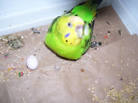 I've been saying it for a while. I have a parakeet who thinks she's a chicken. Perhaps you scoffed at this but it's true. That's her in the picture with one of the many egg she has laid. It all started about ten months ago and at first I thought it was just some weird thing birds did. Of course there is nothing viable in the egg what with no daddy bird around, at least that I know of, unless there is some don juan bird sneaking in at night but the likelihood of that is silly. So my bird is prod