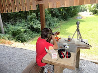 Adam shot first. He's a natural. It was great to watch Jon instruct him and then watch Adam's smile grow every time he had a good "grouping." He did great. I'm very proud of him. Then it was my turn. The rifle was heavier than I thought it would be. But after I got comfortable—it's all about center of gravity and having your butt in the right place. I loaded the rifle, sighted and fired. And guess what? I did pretty well. I always did have good hand/eye coordination. And I will admit, it was a blast.