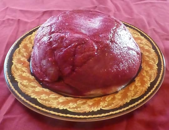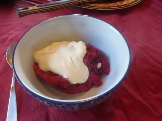 The summer pudding turned out beautifully, looking just as it should, like an afterimage of Silbury Hill on a sunlit day in June.