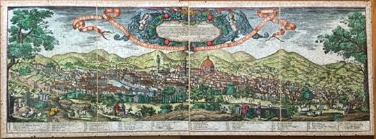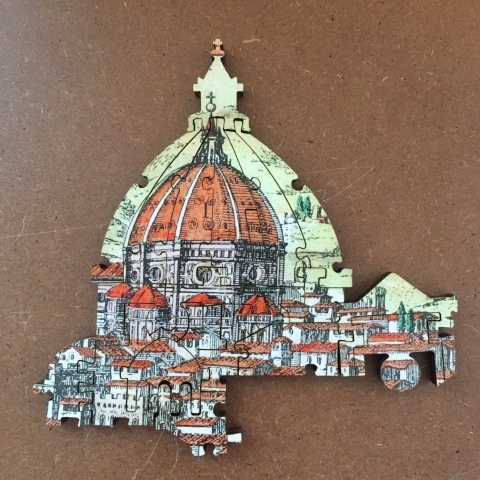 But with the pandemic raging on, I’ve been allowing myself whatever puzzles I can get hold of. Call it a travel budget. I’m certainly not spending much on junketings. Liberty, all praise to their sense of fair play, has rationed orders, with an endless queue. So I started combing the internet for this map of Florence, and at first I found only a used one (somewhat puppy-damaged) sold long ago on eBay, and a ghost request on two guys’ exquisitely curated wedding gift registry. I hope they got it.