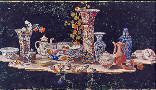 I so love the idea of flowers caught in china caught in stone caught in laminated cardboard, shattered and remade. And when a few years ago I hunted down that real table in Florence, I squee’d!