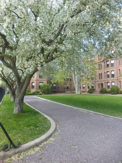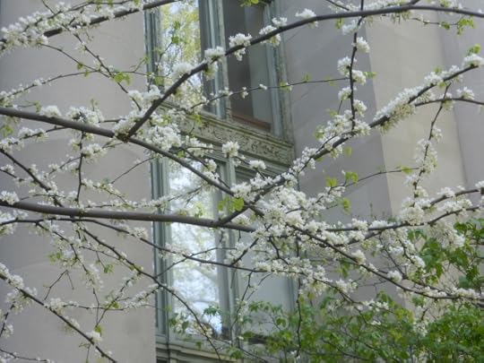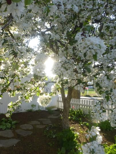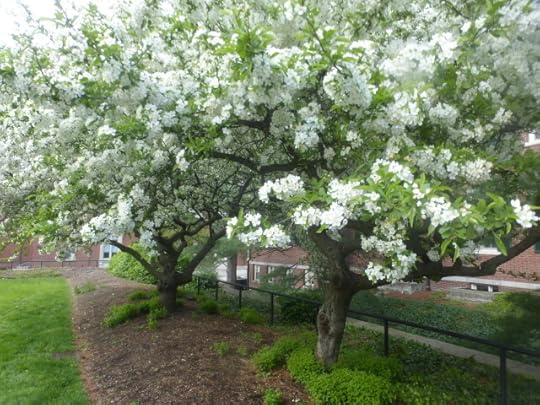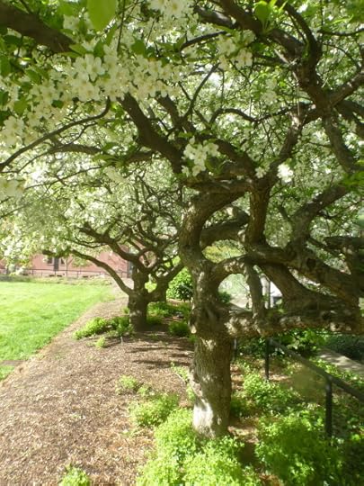 Here’s the crab-apple row across from my dear abandoned home. I go there now and then, like Mole, to fetch my mail and whatever else I find I need: a madeleine pan from the back of a cabinet, some lighter clothes, that book I suddenly want now...