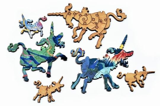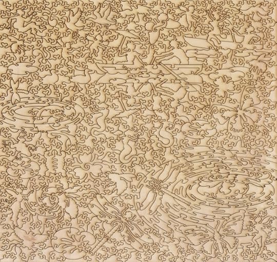 But I always wanted a real wooden jigsaw puzzle. I think the first one that I saw was a Mad Hatter’s Tea Party belonging to my cousins’ inimical aunt, which I wasn’t allowed to play with. That yearning went into Moonwise: