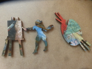 And the painter, slashed with sky, and his daubed palette: