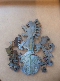 So my coping and calming device just now is wooden jigsaw puzzles. I like the feel of a nice fat puzzle piece chunking into place. I like to commune with the picture, dreamily. I like that moment when an impossible piece from some other puzzle fits in, when a frustratingly unfillable gap was always that nondescript piece lurking on the margins. And I love reversing entropy. I spent much of my adolescence doing classic Springbok puzzles—May from the Très Riches Heures, a Chinese plate, and above all this one of a princely tabletop in pietre dure (inlaid semi-precious stones):
