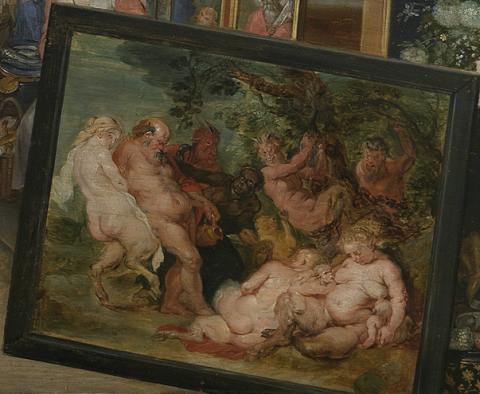 In all the maze of paintings in this painting, I hadn't ever really paid attention to the family picnic of satyrs, like a particularly louche SCA camping event: