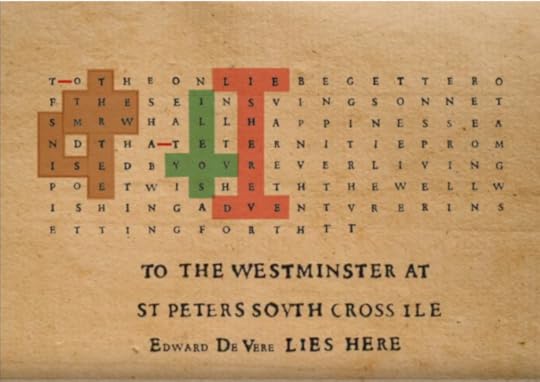 But the anti-anti-Stratfordian rant was a palpable hit, judging by the number of people who kept buttonholing me to say how much they'd enjoyed it. "Delicious snark," as one said. I'd asked for AV help, as I had a number of slides on a thumbdrive, points that could only be made visually. For example, Alexander Waugh (grandson of Evelyn, son of Auberon) likes to draw shapes around letters:
