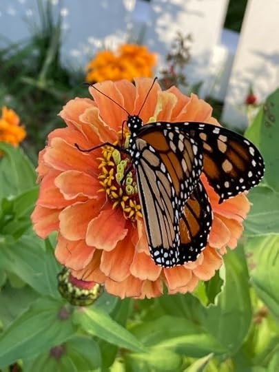 Outside the cabinet of curiosities, there's an acre of wetland, blazing with winterberries. I came too late for the fireflies, but L. is longing to dig a frog pond, a sanctuary for the tadpoles and a barracks for mosquito slayers. She's already built a tump and planted it with rare evergreens, carpeted with mosses and with painstakingly propagated four-leaf clovers . The annuals, well blanketed at night, were brilliant still; the roses, spilling over. An antique lilac had re-bloomed.
