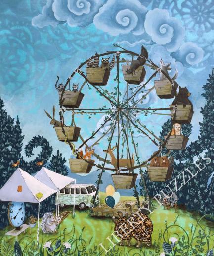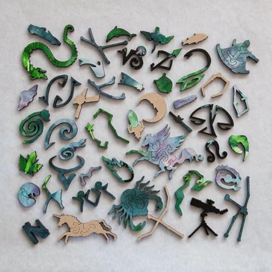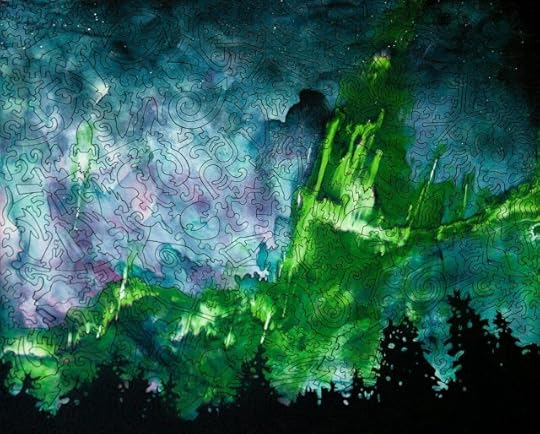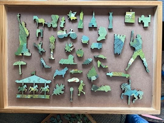 I found this on Rebecca's puzzle blog, reviewed as "truly oneiric." If puzzling were an Olympic sport, I think she'd make the team. She's done thousands of wooden jigsaws—apparently one or two or even three a day—and reviews them. Her taste in images does not completely Venn with mine, but her knowledge of cutting and of whimsies is both wide and deep. She gave this one of her very rare 5/5s.
