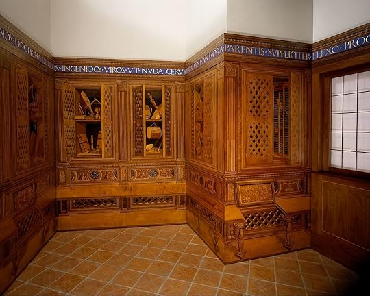It was a fine day in early spring, so beforehand, I walked about admiring the Olmsted landscape and some fine brisk turn-outs among the hansom cabs, and browsing the bouquinistes. Afterward, I walked all the way up the Park from the Plaza corner to the Met, and passed a mad dowager in more furs than a Conan movie. There was so little time when I got there, that I just let myself get lost, and (speaking of jigsaw puzzles) ended up in that gorgeous intarsia Studiolo from the Ducal Palace in Gubbio. How could I forget it was there?