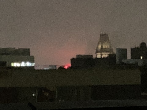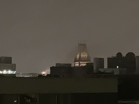 So from my rooftop, I looked out on a cityscape painted by a melancholic post-Impressionist. All sepia and subfusc, with a sputter of damp squibs.