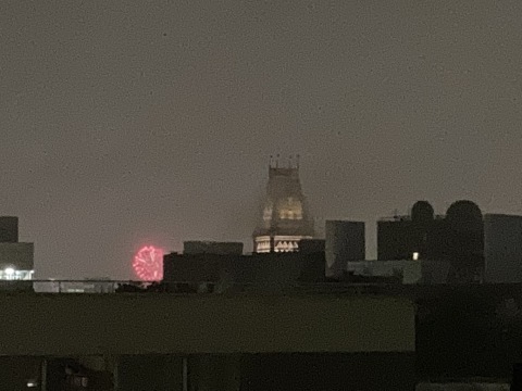 Of course, it started pouring cats and dogs again, right before the show. The city had moved the firing site, which blocked my view; the rain kept beating down the sparks; the fog was universal.