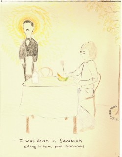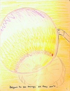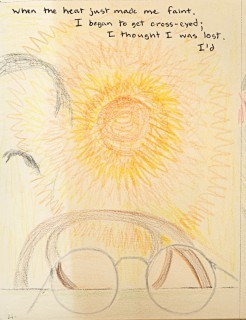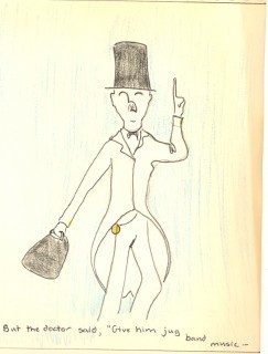 From another sketchbook (sadly yellowed), an unfinished cartoon sequence, a sort of early art video. The song ("Jug Band Music") still makes me smile.