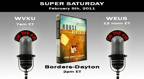 As part of the launch of HOUSE DIVIDED, this coming Saturday February 5th, I will appear on two radio shows and hold a book signing/Q&A in one day.