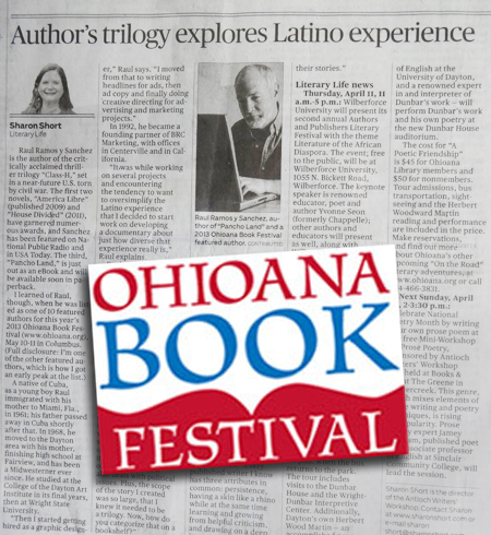 Dayton Daily News story by reporter and fellow Featured Author Sharon ShortI'm proud to announce the Ohioana Book Festival has selected me as one of its ten Featured Authors for 2013. This honor is based on the release of the third novel in my Class H Trilogy, PANCHO LAND. The Class H Trilogy includes the novels AMERICA LIBRE (2009), HOUSE DIVIDED (2011) and PANCHO LAND (2012). In the seven years since its inception the Ohioana book Festival has become one of the major literary events in the Midwest. And my publisher (whom I'm happy to say always looks out for the bottom line), is making available a limited-time discount to celebrate this special recognition…PUBLISHER'S CELEBRATION SPECIAL!