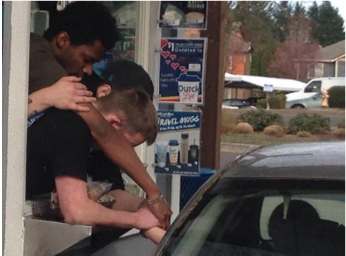 If you’re in need of some soul food then look no further. At a Washington based coffee shop employees stopped everything they were doing to comfort and pray for a grieving woman. Waiting in the drive-thru line a witness snapped a picture of the RAK (random acts of kindness) See pic below. Pass along the happiness by sharing the daily Skinny & remember live with kindness. (Source Mashable)