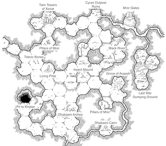 Locations are more than maps, though. You'll want to list out the interesting features the characters may run into in these locations. In Return of the Lazy Dungeon Master I recommended an evocative name and three features for each location. That may be more than we need for our minimum viable D&D game. An evocative name alone might be enough to fire up your imagination when you need it.