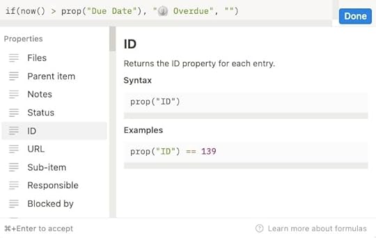 On this project, the team needs to complete about 100 tasks, yet the view above only shows the overdue ones. Hiding future tasks didn’t take much effort thanks to Notion’s über-useful formulas. I defined the Past Due as follows: