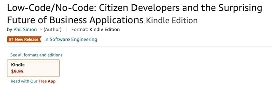[image error]I am pleased to announce that Low-Code\/No-Code: Citizen Developers and the Surprising Future of Business Applications\u00a0is out. So far, I’m just seeing it on Amazon. The other dominoes should start falling shortly. The paperback is up now, the ebook is coming on November 4th, and the hardcover should be dropping next week.\n Based on my interactions, pre-sales, and the number of inquiries for custom editions and bulk orders, number 13 is striking a nerve. Pre-orders for the Kindle edition have been strong:\n [image error]\n It’s not hard to understand why. LC\/NC tools\u2014like the one that runs this website\u2014are exploding. Citizen development is gaining momentum.\n Against this backdrop, Low-Code\/No-Code has arrived at the perfect time. The book’s endorsements are humbling. At the risk of being immodest, it is an invaluable treasure trove of insightful analysis, synthesis, examples, and advice.\n I hope that you’ll check it out.","tablet":""}},"slug":"et_pb_text"}" data-et-multi-view-load-tablet-hidden="true">Updated: November 1, 2022 Based on my interactions, pre-sales, and the number of inquiries for custom editions and bulk orders, number 13 is striking a nerve. Pre-orders for the Kindle edition have been strong: It’s not hard to understand why. LC/NC tools—like the one that runs this website—are exploding. Citizen development is gaining momentum. Against this backdrop, Low-Code/No-Code has arrived at the perfect time. The book’s endorsements are humbling. At the risk of being immodest, it is an invaluable treasure trove of insightful analysis, synthesis, examples, and advice. I hope that you’ll check it out.