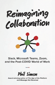 As of early November of last year, the complete name of my book was Reimagining Collaboration: Slack, Microsoft Teams, Zoom, and the New World of Work. Here’s that version of the cover: