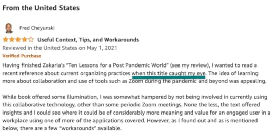 First, I signed up a new client for an upcoming webinar. When I asked him how he had found me, he said that he had searched Amazon for post-COVID books about collaboration. Based on my book’s gestalt, he was intrigued and contacted me. (I’m talking about its cover, title, subtitle, book description, endorsements, and reviews.) He’s also purchasing 100 copies. Second, entrepreneur.com listed Reimagining Collaboration as one of 10 New Books for Leading in a Hybrid Work Environment.