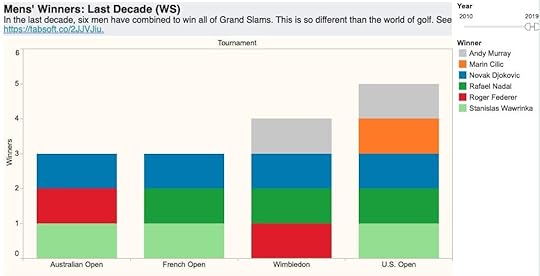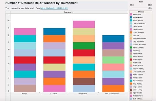 Contrast that with tennis. The era of the Big Three is alive and well. Case in point: Only six different men have won major tournaments in the same time period.