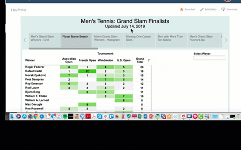 No, you don’t need to google anything. Just find the data, tweak it, and mess around in Tableau. I did something similar on Sunday after Rafa Nadal won his twelfth French Open. It turns out that replacing datasets is very easy if you’ve structured your data similarly.1