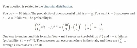 To answer my question, I used a statistics tool that I learned in college: the binomial distribution. It’s perfect for roulette and coin flips. For instance, to determine the odds of three heads in ten coin flips:
