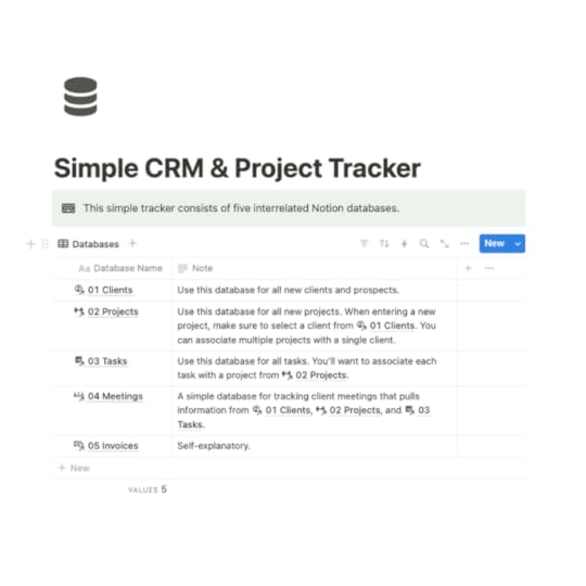 DrumrollThe Simple Notion CRM & Project Tracker allows freelancers to track clients, projects, tasks, meetings, and invoices in Notion. These five interconnected databases work seamlessly together and serve as a one-stop shop of sorts. I’ve thrown in some cool formulas and database views designed to make life as easy as possible for users. Of course, you can customize the databases, add formulas and views, and much more. The world is your oyster.