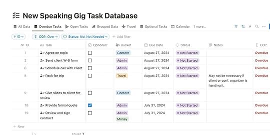 Today, I’m pleased to announce my latest Notion template. It’s a simple task database that speakers can share with their clients, speaker bureaus, support staff, partners, and publishers. Oh, and it’s simple to customize as you see fit. You can easily replicate it for each gig, or you can turn it into a Notion template in proper CRM like this one.