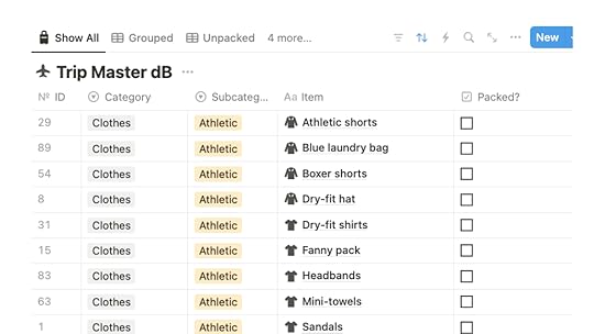 Over the last few months, I created a system in Notion to ensure that I never forget to do or pack anything again. Ever. Here’s one of the screenshots from the system: