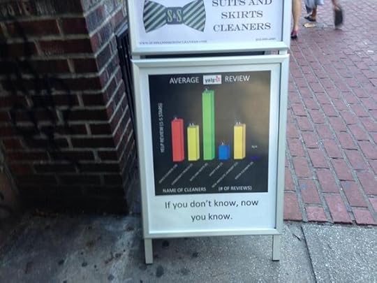 Walking around Manhattan a few days ago, I couldn’t help but notice this simple chart of a dry cleaner’s Yelp reviews.