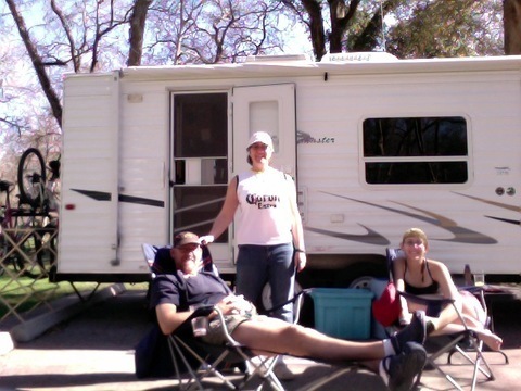 We're in Texas right now, just left the coast. I miss the ocean already, but we'll be headed back soon. Oh, and here's my luxurious home and my lovely family.