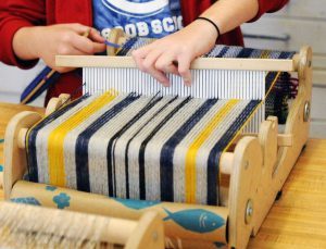 Ruben Marroquin taught weaving to fourth-grade students in Cos Cob, Conneticut earlier this month as part of National Hispanic Heritage Month.