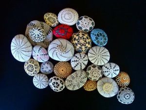 Social media sites can be brutal. They can also be beautiful and #womensart is one. They are on holiday until 01 November, however there are over 21k tweets you can browse through to learn about remarkable artists. The photograph is of ‘Little Urchin Crochet Covered Sea Stones’ by Margaret Oomen.